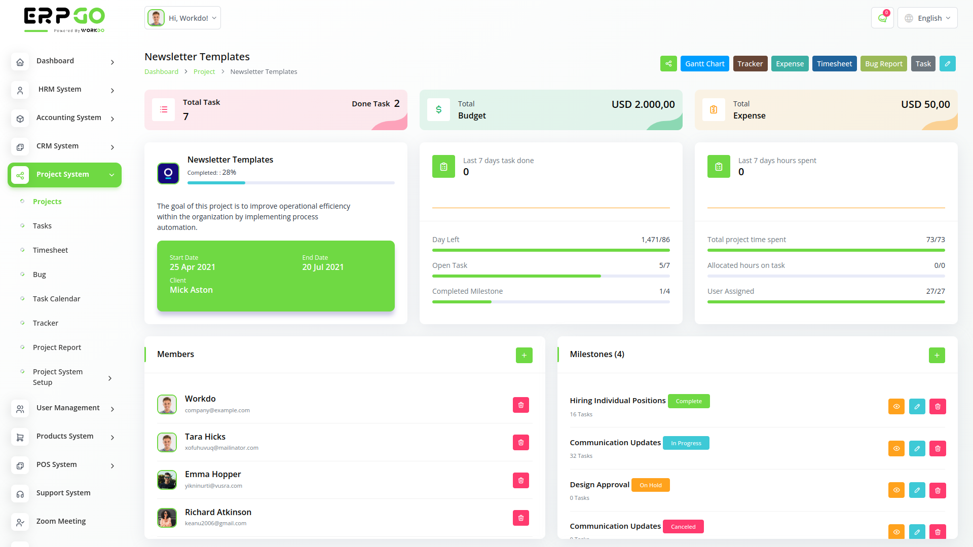 OCTA ERP All In One Business ERP With Project, Account, HRM, CRM & POS